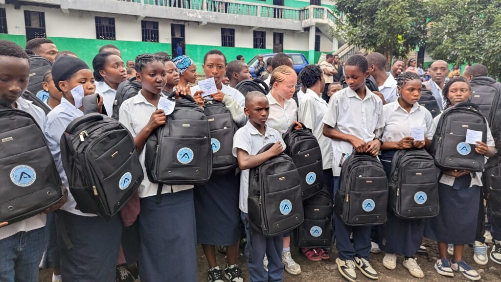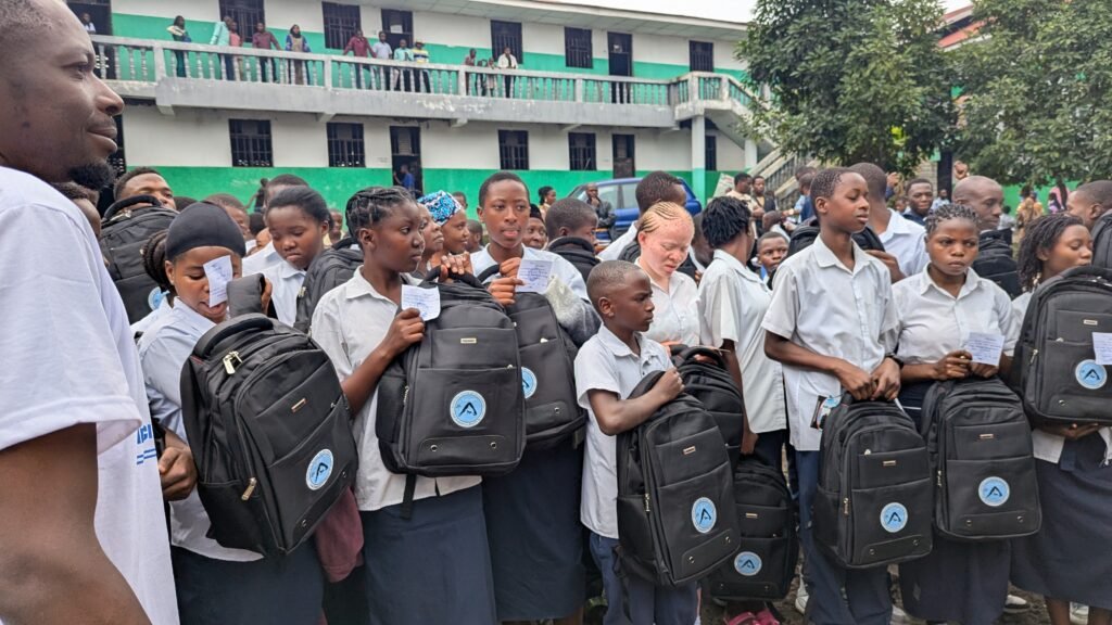 A travers son initiative en faveur des enfants des familles déplacés de Goma, une distribution des fournitures scolaires et des matériels pédagogiques a ciblé 50 élèves dont 26 filles reparties dans deux écoles en date du 12 juillet et en date du 16 juillet 2025, suivi du paiement des frais manquants pour les élèves brillant.e.s mais insolvables, les élèves marginalisé.e.s et les élèves déplacé.e.s mais insolvables ne pouvant être proclamés à la fin de l’année, ces deux écoles sont entre autres le complexe scolaire la bénédiction, le complexe scolaire carrefour ciblées dans deux sous divisions entre autres la sous division de Karisimbi 2, la sous division de Nyiragongo en territoire de Nyiragongo.